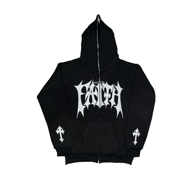 HOODED ZIP WITH EMBROIDERED LETTERS HOODIE
