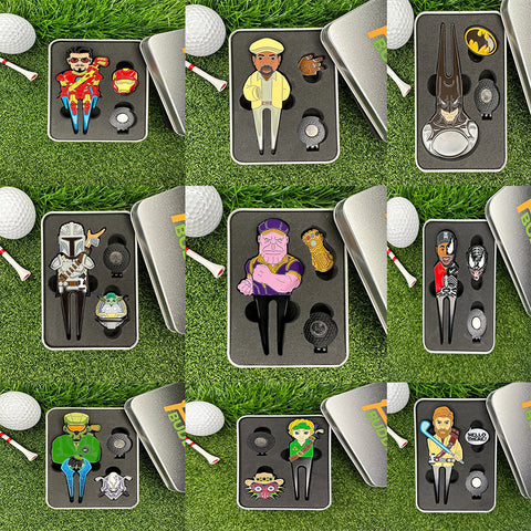 Every ball marker contains a strong magnet that attaches onto to the divot tool and comes in a protective tin. Ball markers can also be used with the magnetic hat clip which is also included